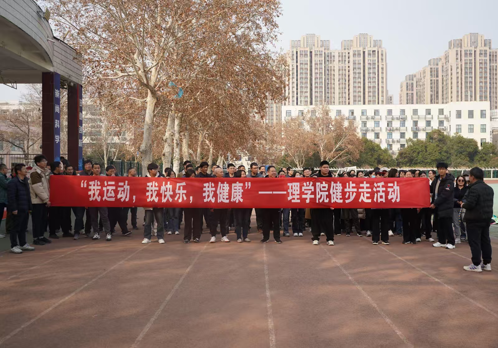 全体领导班子和全体教职工齐聚操场,共享运动欢乐时光。