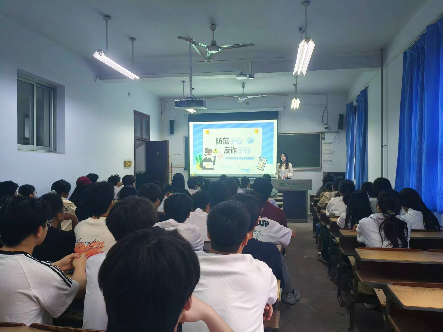 以班级为单位于文化路校区召开校园防诈骗安全教育宣讲会。