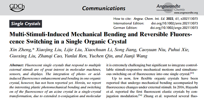 研究成果以“Multi-Stimuli-Induced Mechanical Bending and Reversible Fluorescence Switching in a Single Organic Crystal”为题,发表在国际化学著名期刊《Angewandte Chemie International Edition》上。Bet365手机版下载