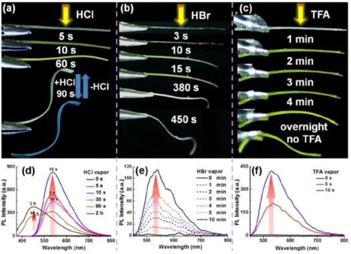 图2. 晶体在HCI、HBr和TFA蒸汽下的塑性机械弯曲