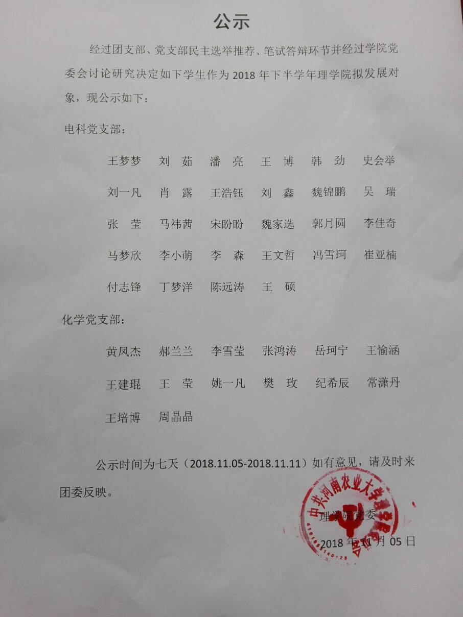 2018年下半年Bet365手机版下载 拟发展对象公示