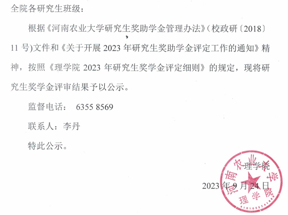 关于Bet365手机版下载 2023年研究生奖学金评审结果的公示