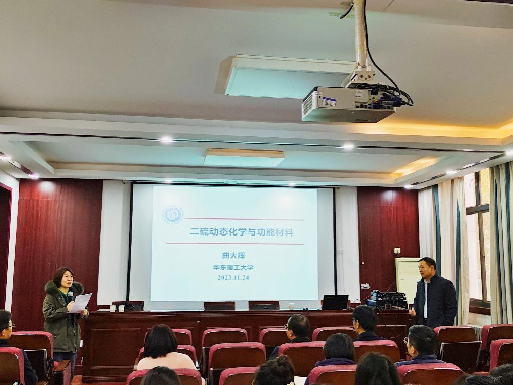 曲大辉讲述了课题组在二硫动态化学与功能材料方面的研究工作,以天然小分子硫辛酸为基础,开发了一种动态超分子聚合物的简单、高效的制备方法,聚焦动态组装材料中分子基元设计和组装策略等关键问题,利用动态共价键、非共价键等多级协同、动态组装策略,实现了动态智能组装材料的高效创制。