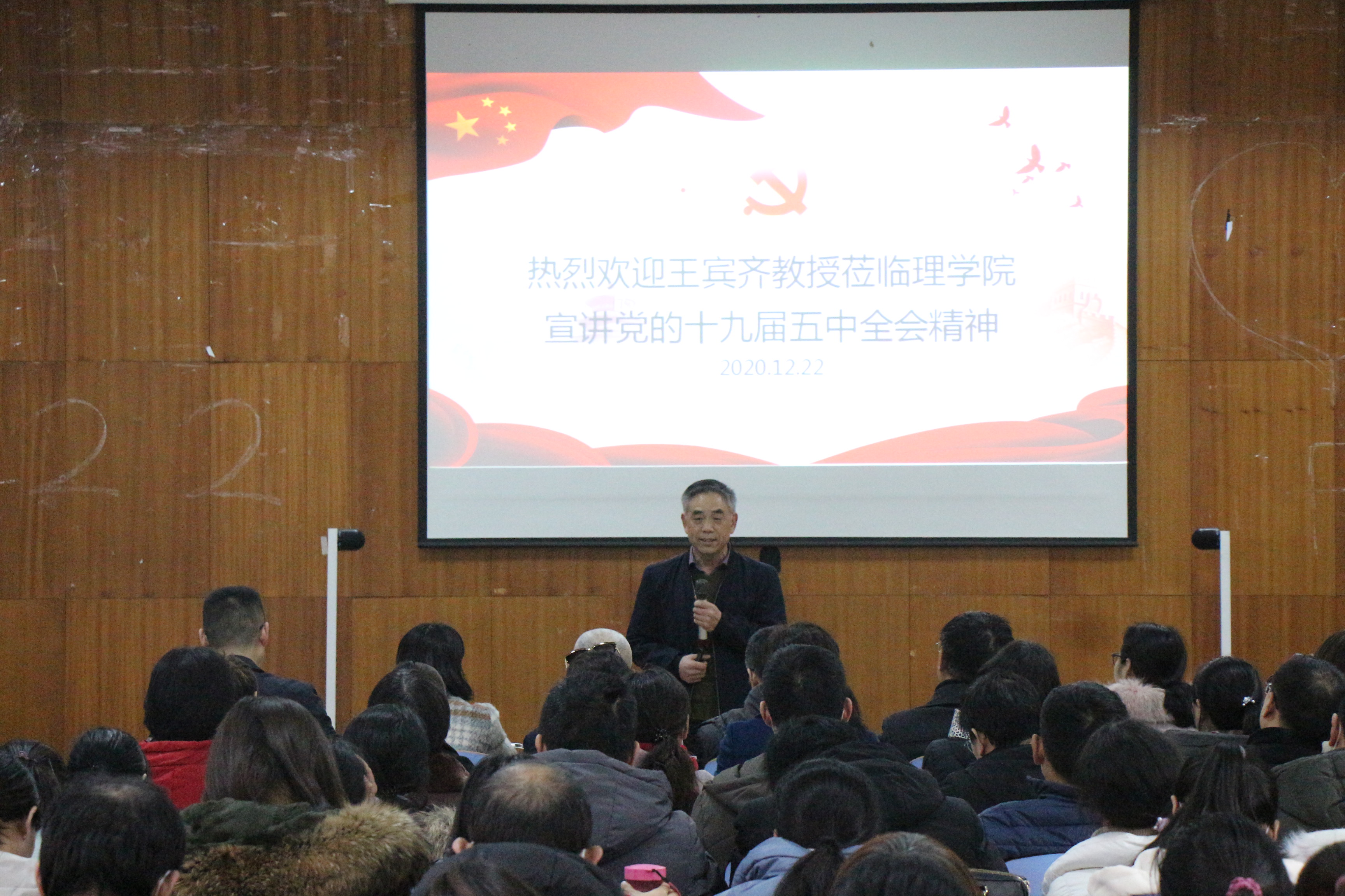 会上,王宾齐以“深入学习贯彻党的十九届五中全会精神”为主题,从深刻认识我国进入新发展阶段的重大意义,准确把握“十四五”时期我国发展的指导方针,牢牢把握构建新发展格局的战略构想和重要着力点,坚持党的全面领导等四个方面,给师生做了一场十分精彩的报告。