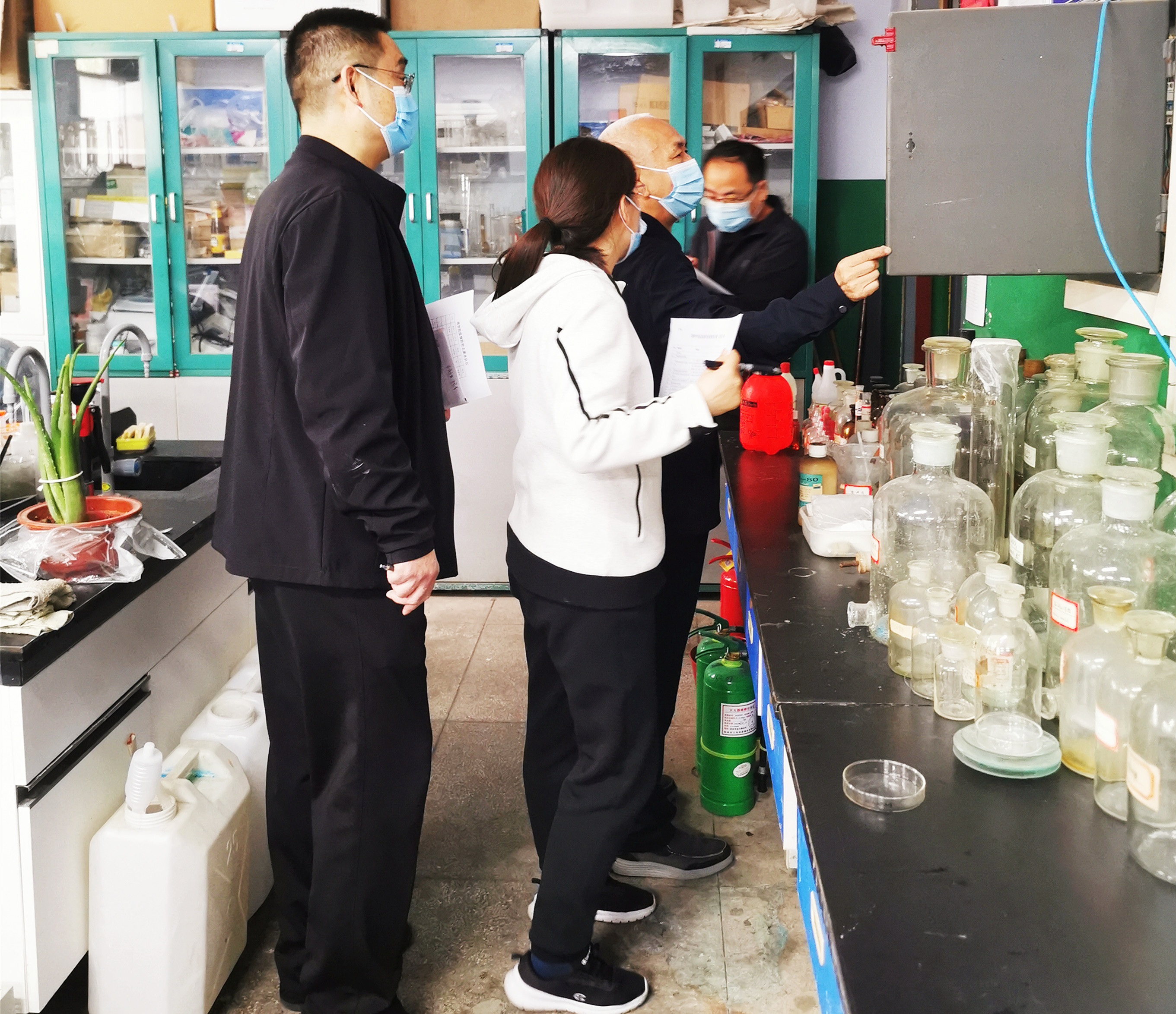 检查小组重点检查了实验室消防安全隐患、基础设施安全、化学药品存放、气体钢瓶的管理使用情况、特种设备安全操作、实验室和自习室环境卫生状况等,并对之前发现的安全问题进行复查,确认之前所出现过的问题已经得到相应解决。并要求相关责任人要做好实验室安全排查工作,及时发现问题并解决问题,防患于未然。