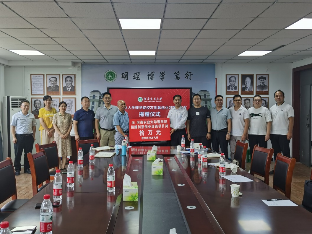 会议伊始,院长郑先福对校友们表示热烈的欢迎,对Bet365手机版下载 发展情况作了简要介绍,强调Bet365手机版下载 的发展成就离不开每位理学人的辛勤付出,希望与校友们增进交流,希望校友们为Bet365手机版下载 发展献计献力,并衷心祝愿校友们生活幸福,工作顺利,事业有成。校友代表依次发言,交流了各自的工作和生活,并诚恳地为学校和Bet365手机版下载 发展积极建言献策,表达了能在120周年校庆之际返校的喜悦心情和对母校生日的真挚祝福,寄托了对母校、对Bet365手机版下载 未来的美好祝愿。之后举办了校友捐赠仪式。在热烈的掌声中,郑先福、侯金超代表Bet365手机版下载 接收了校友代表捐赠的“创意创业训练项目奖”拾万元、校友河南海米科技有限公司董事长朱高飞捐赠录播教室设备五万元。