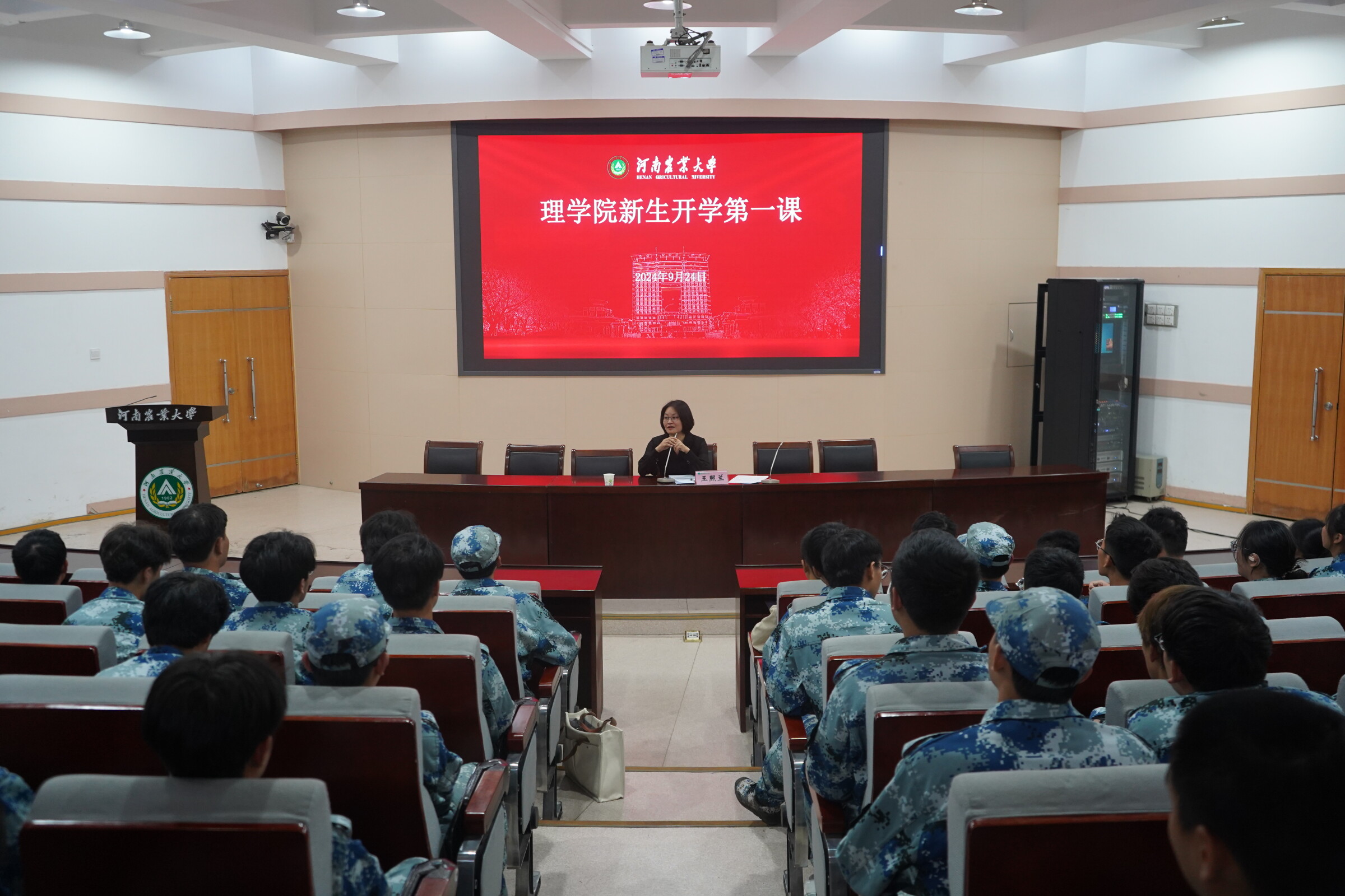 典礼结束后,院党委书记王照兰为新生上《开学第一课》。她从历史沿革、学科建设、科研成果、专业发展等多方面介绍了河南农业大学和Bet365手机版下载 ,告诫大家不仅要做一个品德高尚、文明健康、知识渊博、坚持不懈的人,更要关注自己德智体美劳的全面发展,无德育不立己,无智育不达人,无体育不未来,无才艺不舒展,无劳动不幸福。王照兰书记的讲话内容丰富,为同学们指明了大学期间应该如何全面发展的方向。