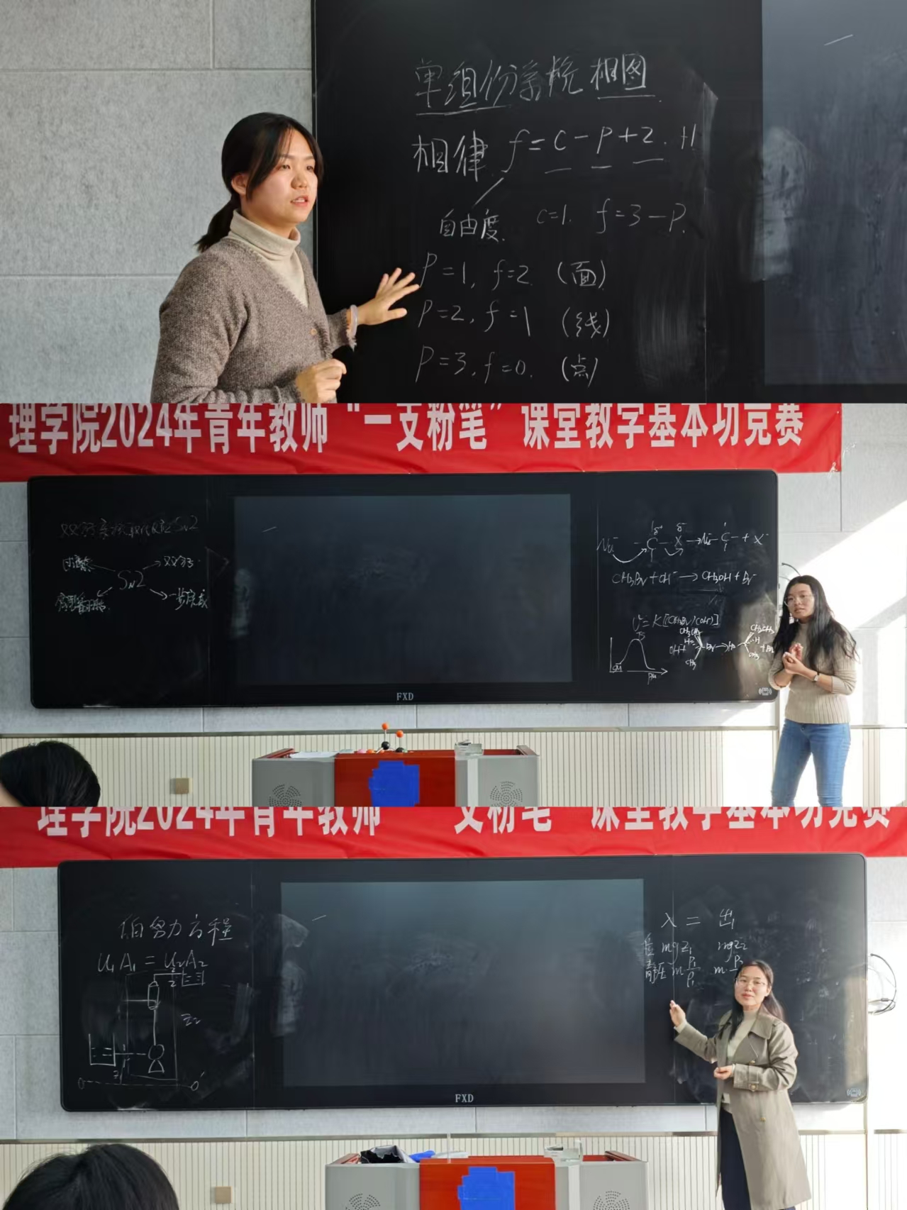 王金铎副处长结合习近平总书记的讲话精神和师德师风建设,以及我校在近年来在各级创新课比赛备赛情况,对青年教师在师德和教学技能方面提出了明确要求和期望,并希望各位老师赛出水平、赛出风采。参赛的17名青年教师“一支粉笔”上讲台,在规定时间内,以板书为主、教具为辅,以扎实的知识功底、过硬的教学能力和良好的精神风貌,巧妙地植入课程思政,呈现精彩生动的专业课程。他们从不同的角进行内容创新,例如用花青素在不同pH条件下的颜色变化,阐释化学平衡移动原理;或用偏振片的角度旋转,揭示马吕斯定律;或从绿豆汤呈现不同的颜色这一生活事例中,巧妙地引入酚氧化的概念。经过激烈角逐,林璐老师获一等奖、赵万鹏等3位老师获二等奖,武晓霞等5位老师获三等奖。