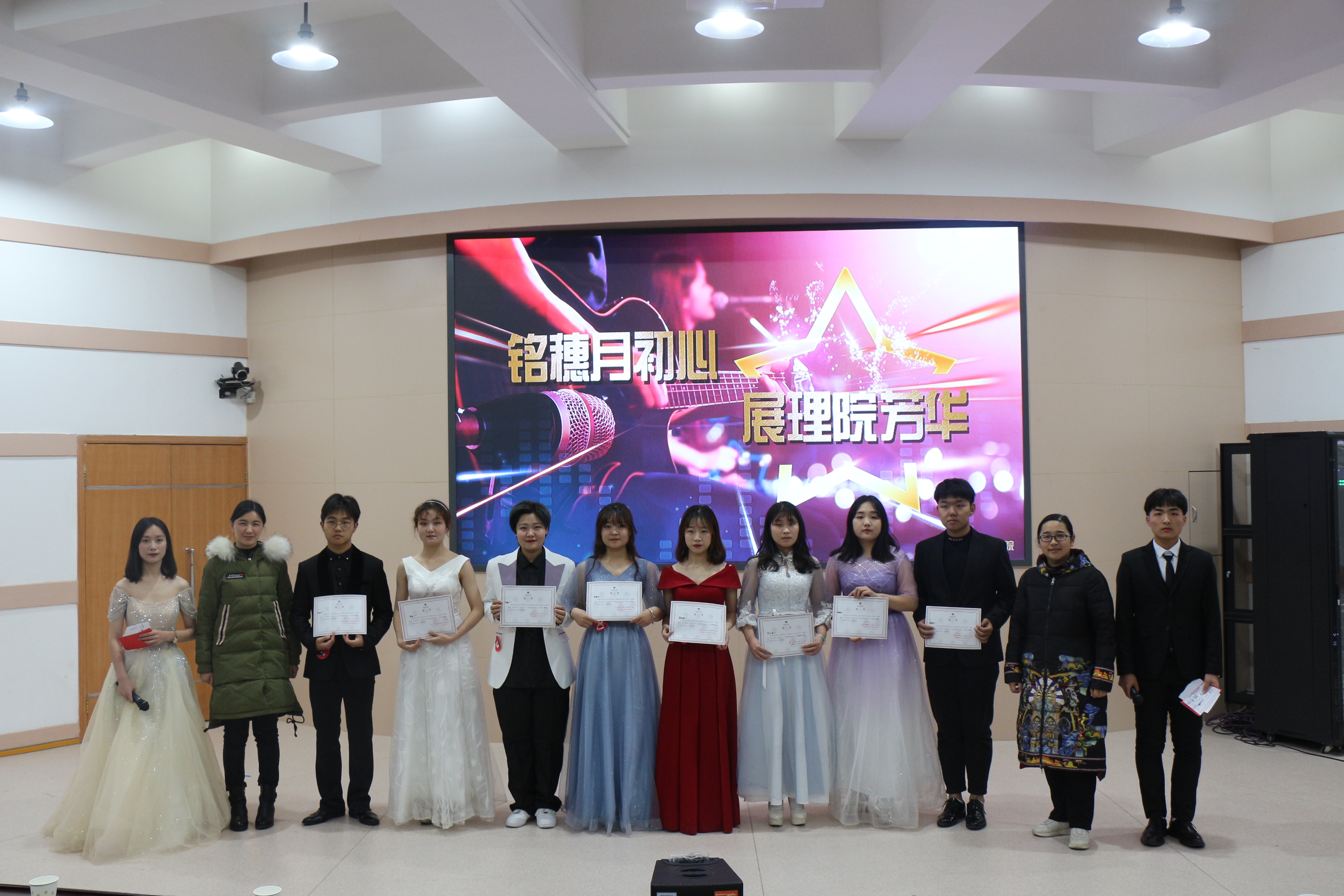 本次比赛分为初赛、复赛和决赛三个环节,经过初赛和复赛选拔,共有八名选手闯进决赛。比赛在超燃的舞蹈下拉开序幕,选手们首先以小组合唱的形式点燃了现场热情,随后依次上台尽情展现自己的才艺,为现场观众带来了一场视听盛宴。比赛中,校艺术团带来的舞蹈和院艺术团的歌曲串烧,将现场氛围推向高潮。经过激烈的角逐,来自20级电科一班的贺秋林同学凭借歌曲串烧《小半,易燃易爆炸》荣获本次比赛冠军。邓瑛和孙晴为获奖选手颁奖并合影留念。