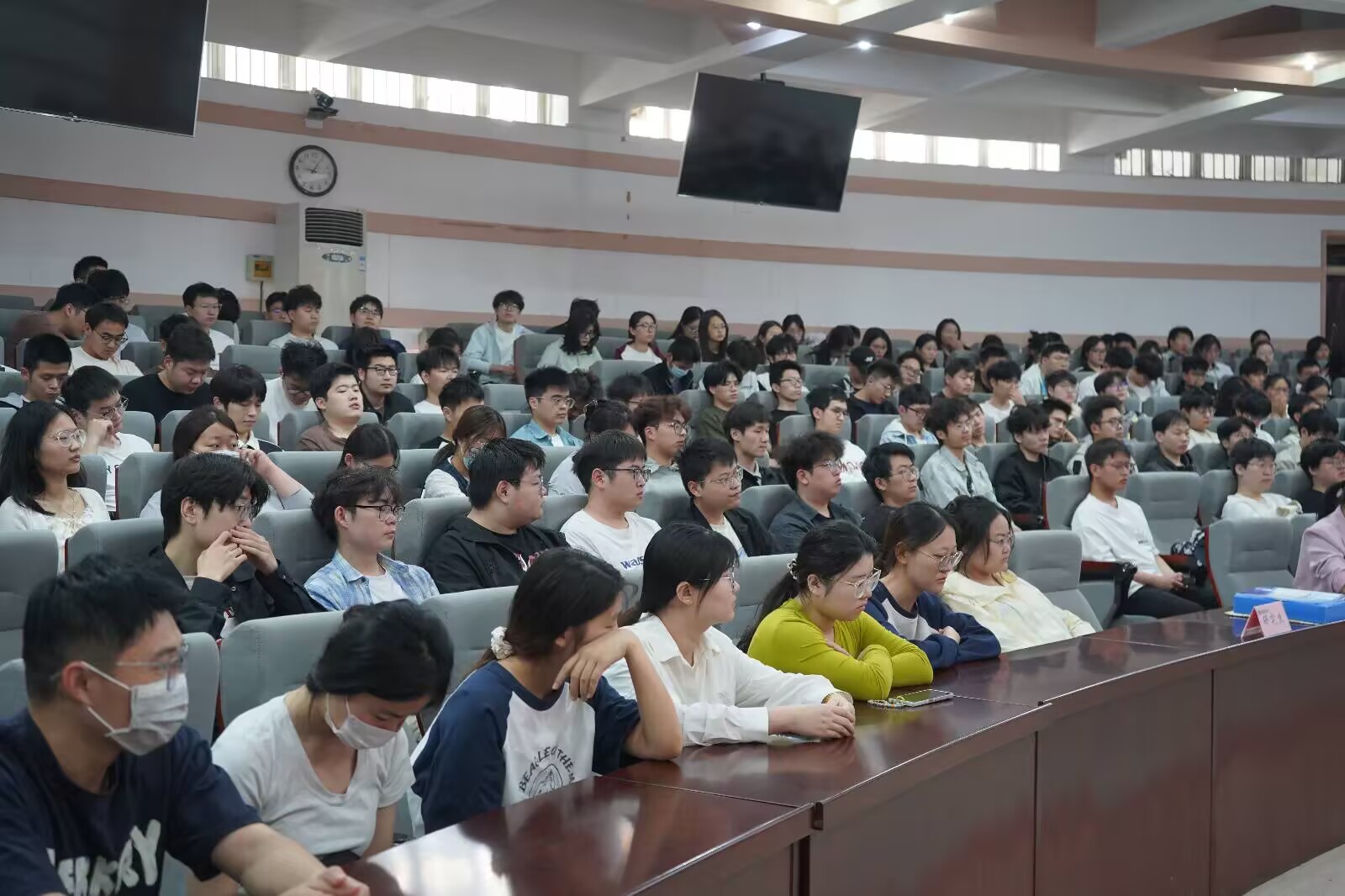 领导班子,系主任,毕业生班主任、辅导员出席会议,全体2025届本科和硕士毕业生参加会议。会议由院团委书记邓瑛主持。