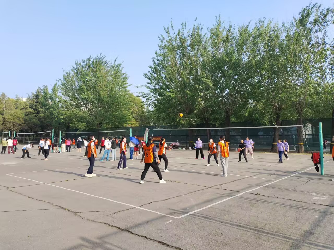 老师们展开了精彩比拼。他们各施绝技,发球、起跳、拦网、扣球。每一次精彩的传球与得分,都引来阵阵欢呼,队员们齐心协力、通力合作,打出一个又一个默契的配合。在球场上,身着相同颜色队服的Bet365手机版下载